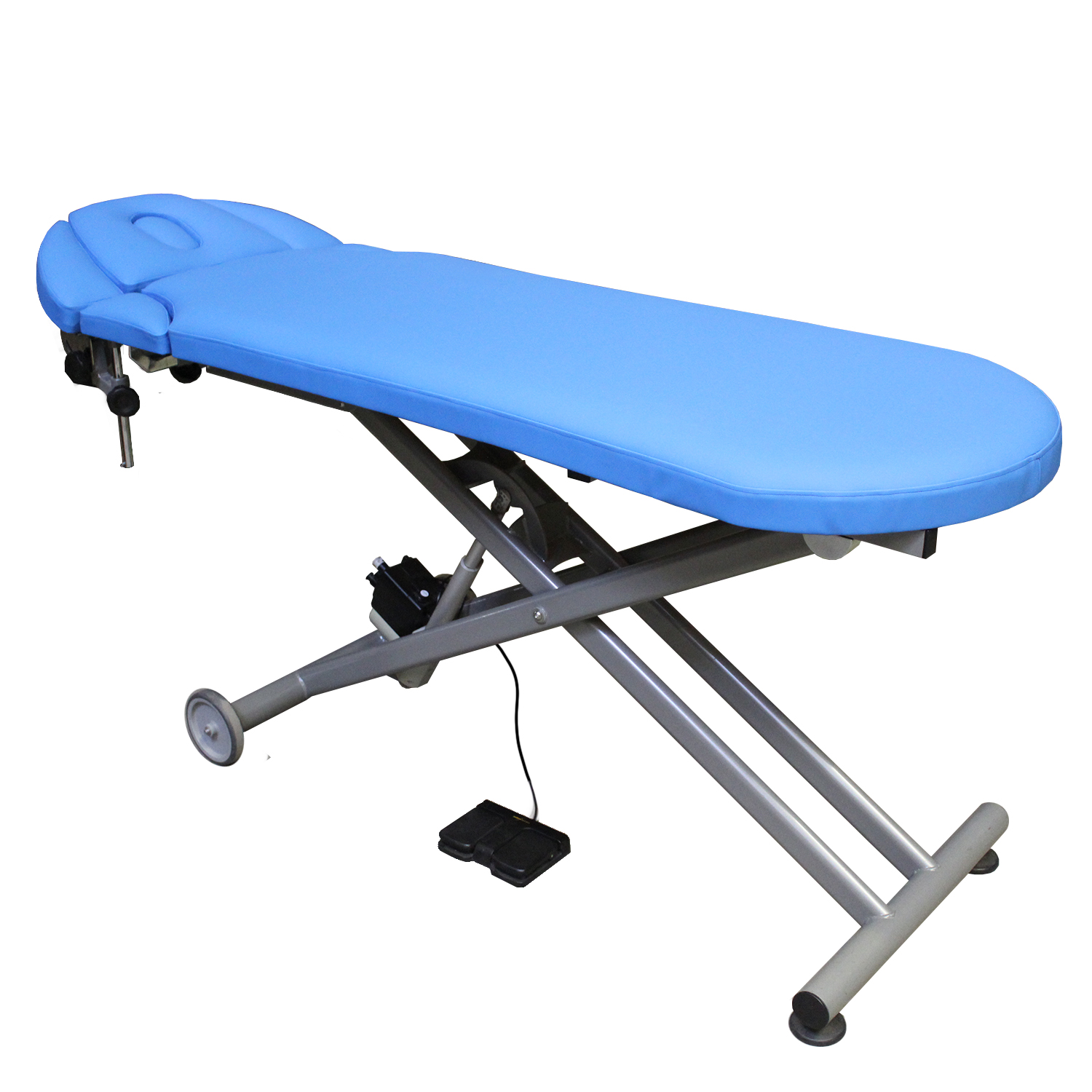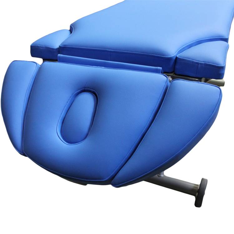 - Farben: Die Polsterfarbe in ansprechendem Eisblau und das silber-graue Gestell fügen sich ästhetisch in jede Praxisumgebung ein.