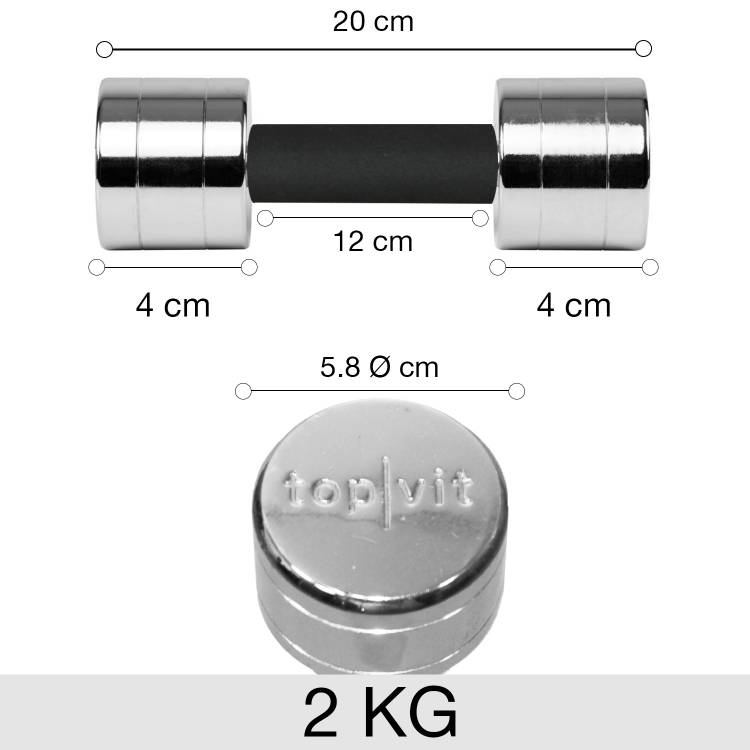 Die top | vit.chrom-Hantel mit 2,0 kg aus massivem, hochwertig verchromten Stahl hat abgerundete Kanten und einen ergonomischen, hautsympatischen Moosgummi-Griff. Selbst mit schweißnassen Händen liegt sie angenehm und rutschfest in der Hand. Die Hantel ist leicht mit Wasser oder Desinfektionsmittel zu reinigen.