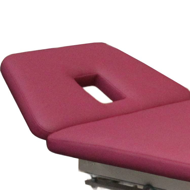 Die 3-teilige Liegefläche eröffnet vielseitige Einsatzmöglichkeiten in der täglichen Therapie. Das Kopfteil lässt sich mithilfe einer Gasdruckfeder stufenlos von +30° bis -45° verstellen. Dadurch kann die Position des Patienten je nach Behandlungsart individuell angepasst werden. Ob klassische physiotherapeutische Anwendungen, Untersuchungen, manuelle Therapie oder entspannende Lagerungen – die flexible Einstellbarkeit schafft eine solide Grundlage für viele Therapieformen. Der integrierte Nasenschlitz ohne Einsatz unterstützt zudem Anwendungen in Bauchlage und erhöht den Komfort bei längeren Behandlungen.